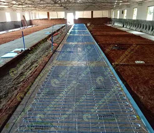 發熱電纜養殖保溫系統是將220V電源連接埋置在混凝土中的發熱電纜,發熱電纜發熱,將熱量傳至混凝土中并儲熱,然后熱量由混凝土通過熱輻射的形式向上緩慢均勻釋放,從而達到下暖上涼的采暖效果。