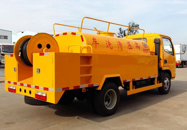 高壓清洗車也稱之為管道疏通車,通過高壓水流產(chǎn)生的強大壓力沖開被堵塞的管道。主要組成部分為罐體、高壓泵、液壓系統(tǒng)等。高壓清洗車主要用于清洗城市下水道、管道的沉積物、死角泥溝的疏通,也可用于清洗工業(yè)排液管道、壁面等,清洗公路、廣場地面。