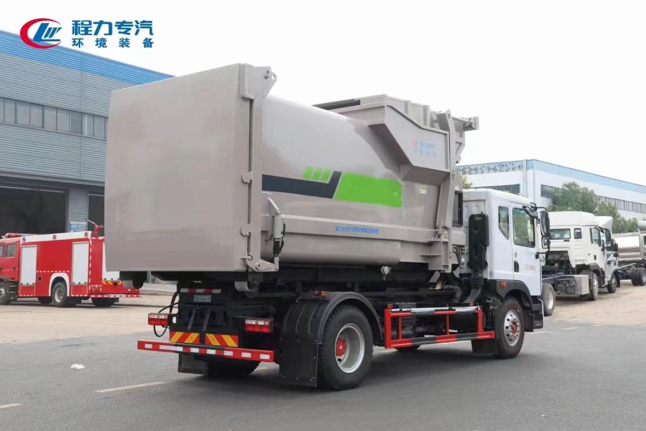 新工藝國六東風多利卡D9勾臂車+移動壓縮箱