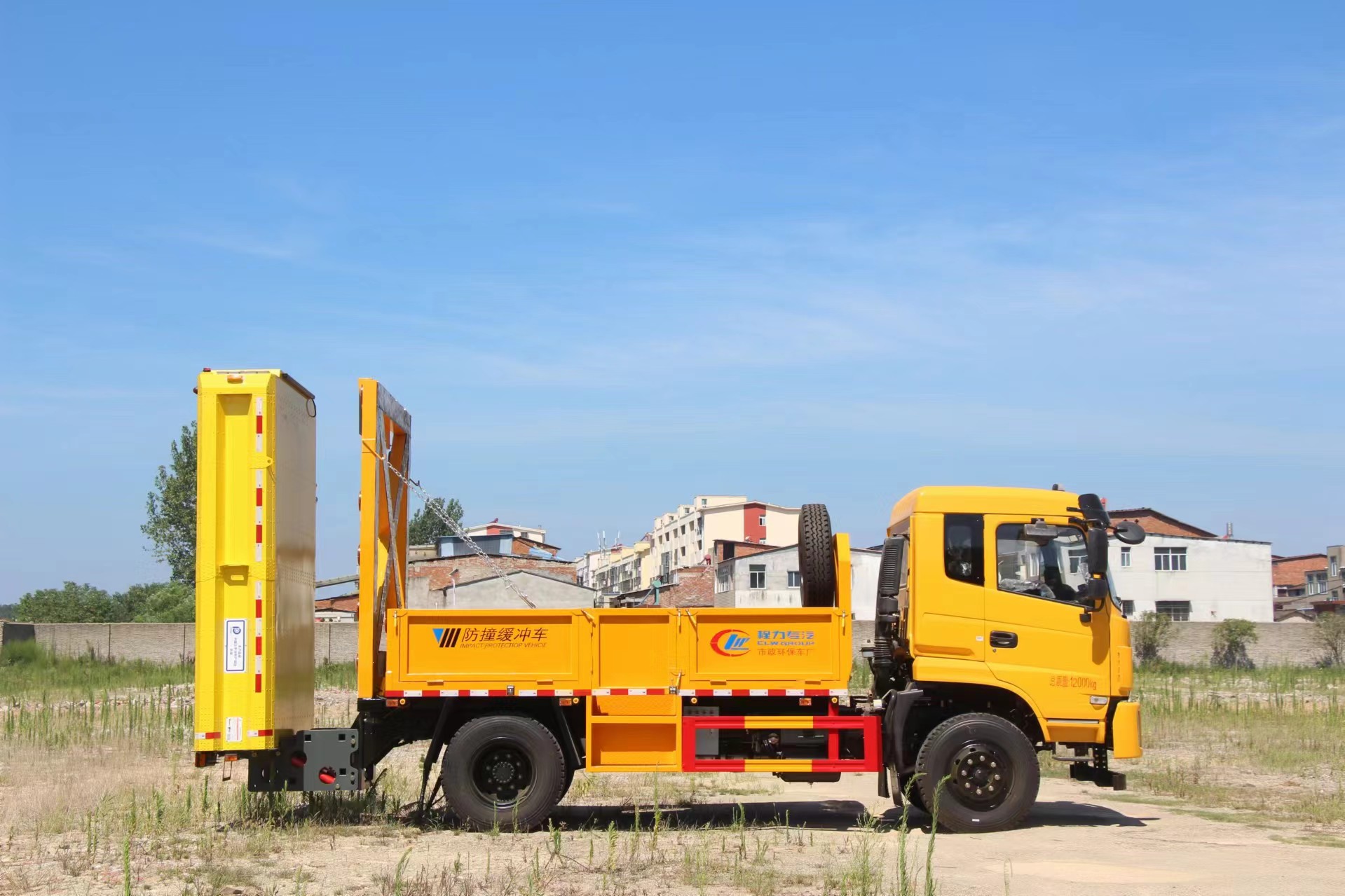 | 上裝配置 | 采用Q235國標邊3mm底板花紋板4mm厚,箱體后部防撞緩沖模塊包采用國際知名技術產品100E防撞緩 沖模塊,防撞緩沖吸能模塊主要由車載防撞緩沖墊和導向標志架組成,充當施工作業車輛后方的緩沖衛士。 如若發生追尾事故,能夠在肇事車輛和前方施工作業區域之間構建一個緩沖區域,通過機具結構變形吸收撞 擊的能量,最大限度地降低被保護人員及設備遭到碰撞的幾率。高性能液壓系統,可實現快速舉升和落下操 作,方便設備運輸轉場,一鍵啟動功能,舉升和落下防撞裝置,當防撞裝置未完全落下到工作位置或舉升到 垂直運輸位置時,會有自動警告音提示。 | ||