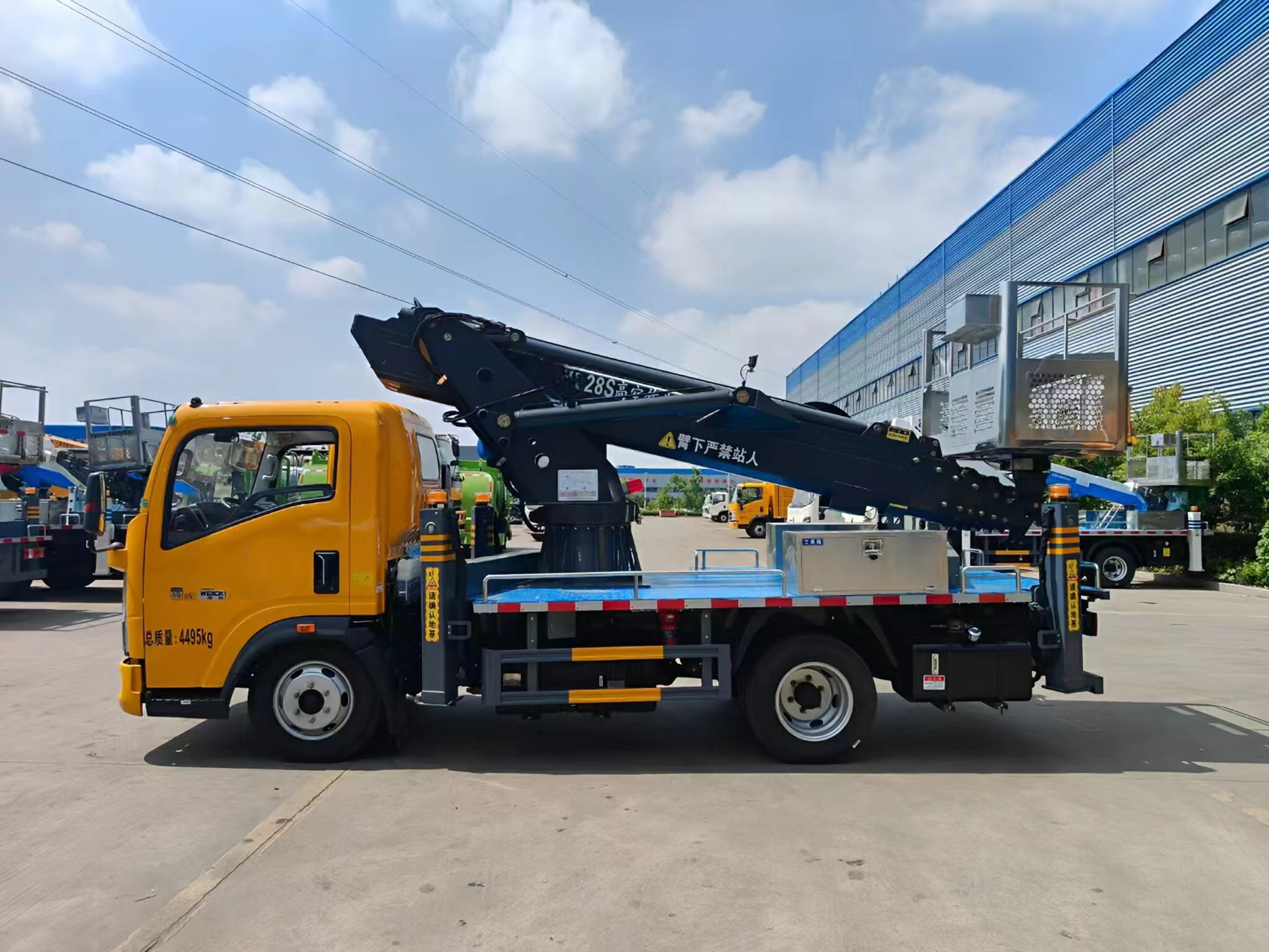 | 上裝配置 | 高空作業(yè)車基本功能安全配置: 最大作業(yè)高度23米,28米,31米 工作平臺: 高強(qiáng)度不銹鋼尺寸:1600*700*1000mm;360度連續(xù)回轉(zhuǎn),電控操作,另配有手動應(yīng)急操作; 控制系統(tǒng):CAN總線控制系統(tǒng),配有無線遙控器、實(shí)現(xiàn)無級調(diào)速, 調(diào)平系統(tǒng):靜液自動調(diào)平 臂架形式:★多邊形型工作臂,同步伸縮 支腿:★前V后H型/前V后V單獨(dú)可調(diào)(控制) | ||