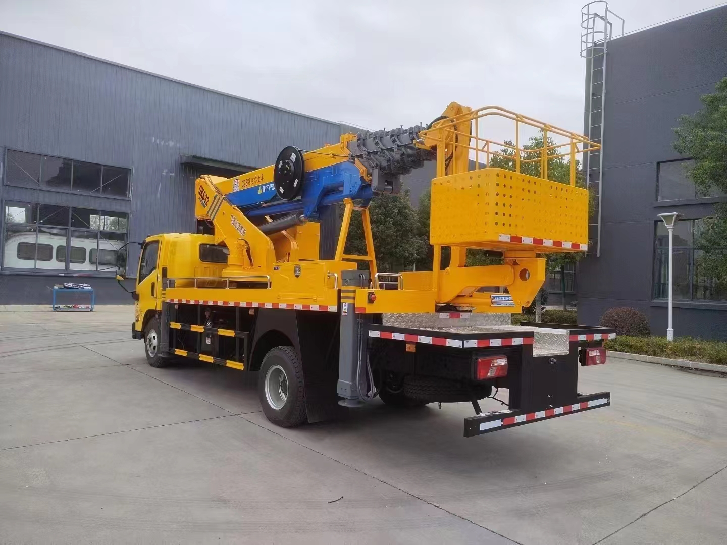 | 上裝配置 | 作業高度32米,帶小飛臂,六節六邊形同步伸縮工作臂,360度連續回轉,配上下車自動互鎖裝置,水平檢測功能,支腿檢測功能,裝有應急電動泵,電液比例控制系統,實現無極調速,液壓自動調平。 | ||